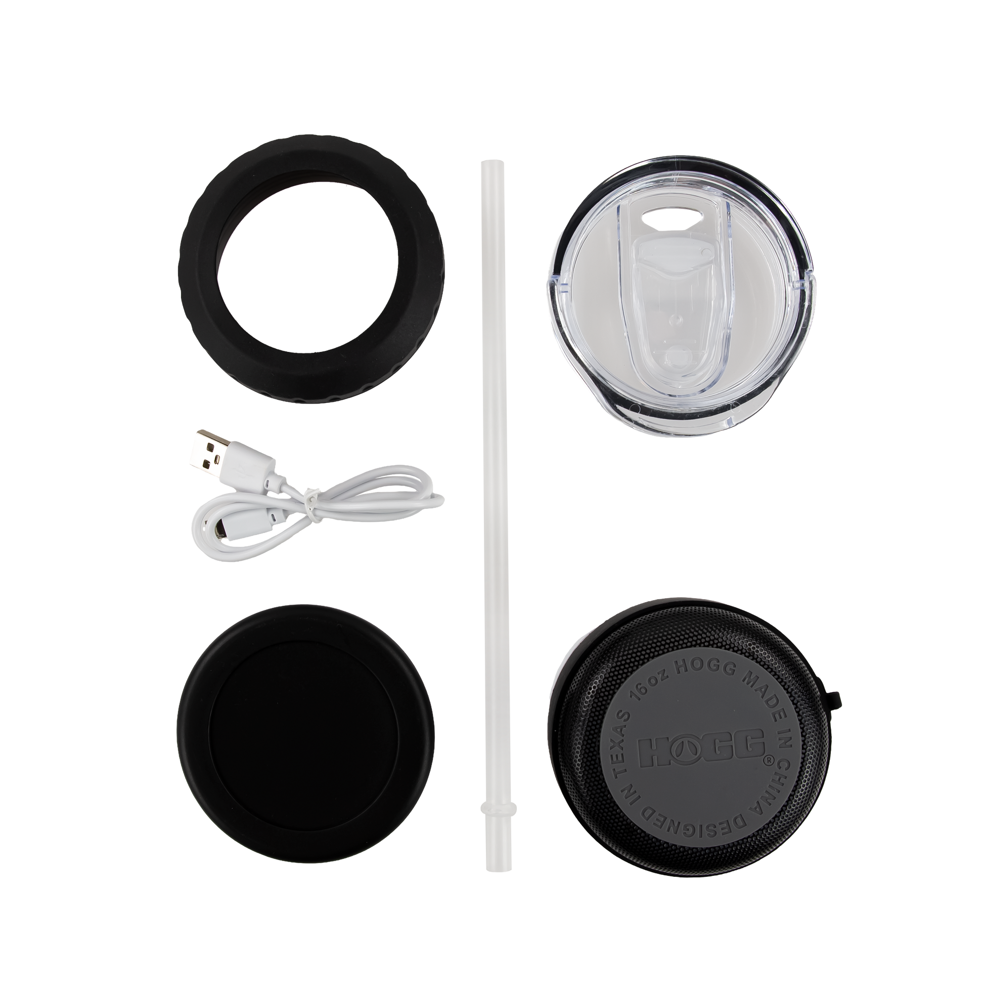 * Integrated black magnetic speaker and flat bottom attachment for stability
