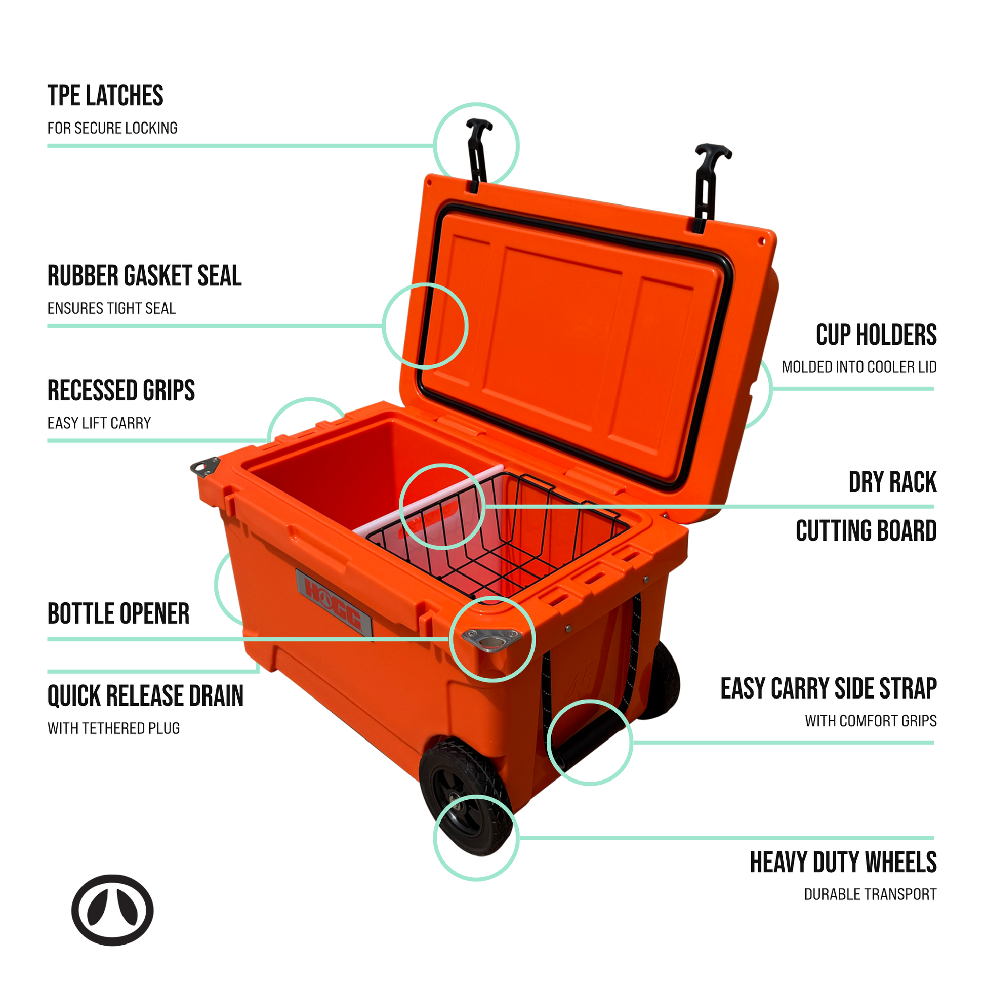 * Wheels on One End: Easily transport your cooler with the durable wheels located on one end.
