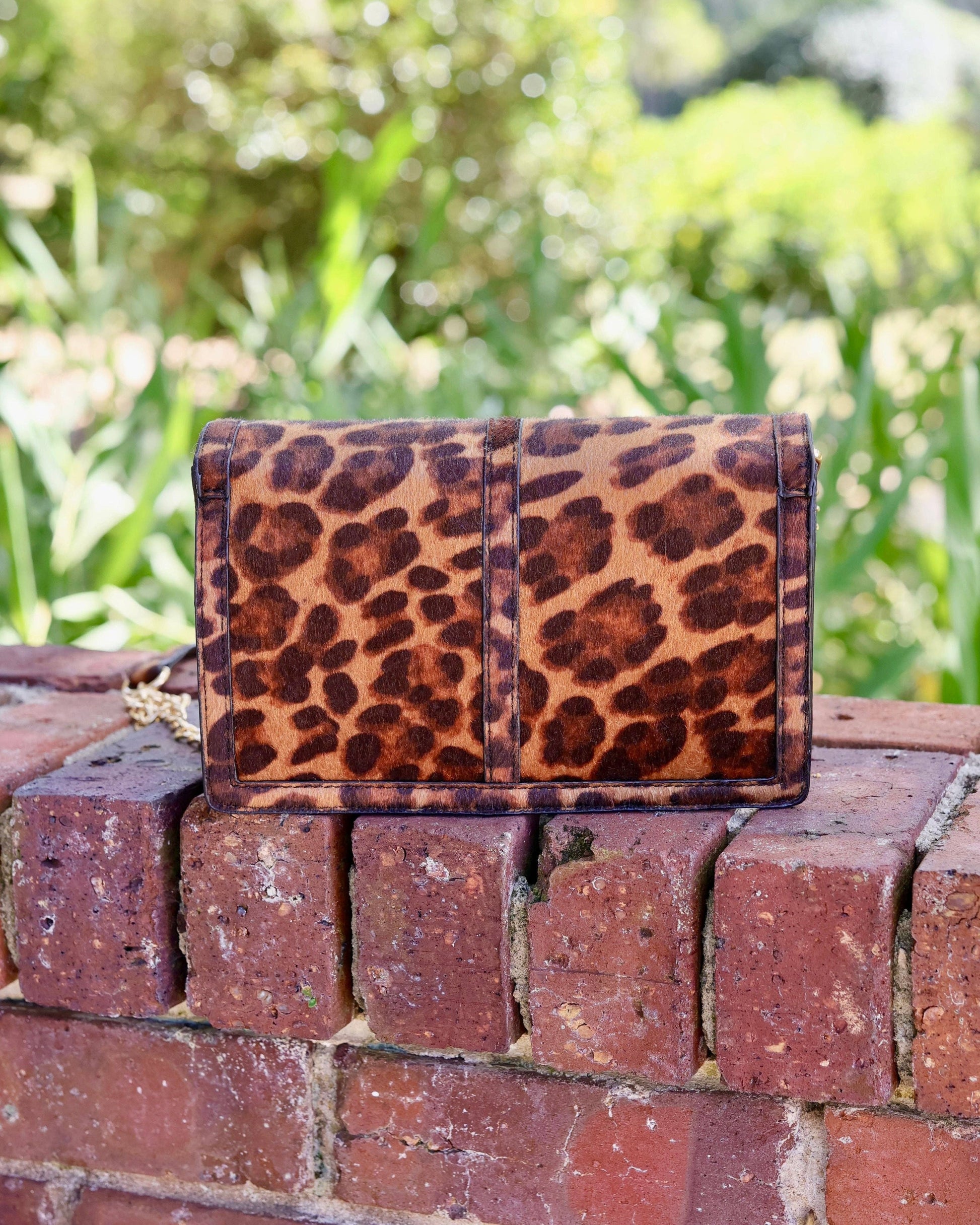 The Cecilia Circle Logo Handbag in Spotted Saddle combines sleek style with practical design. Its faux pony hair texture and boxy shape create a modern, fashionable look, while the fold-over design with a magnetic closure ensures secure access. Featuring a prominent Caroline Hill circular logo, this crossbody bag offers ample space for your daily essentials, making it an ideal accessory for both everyday wear and chic outings.