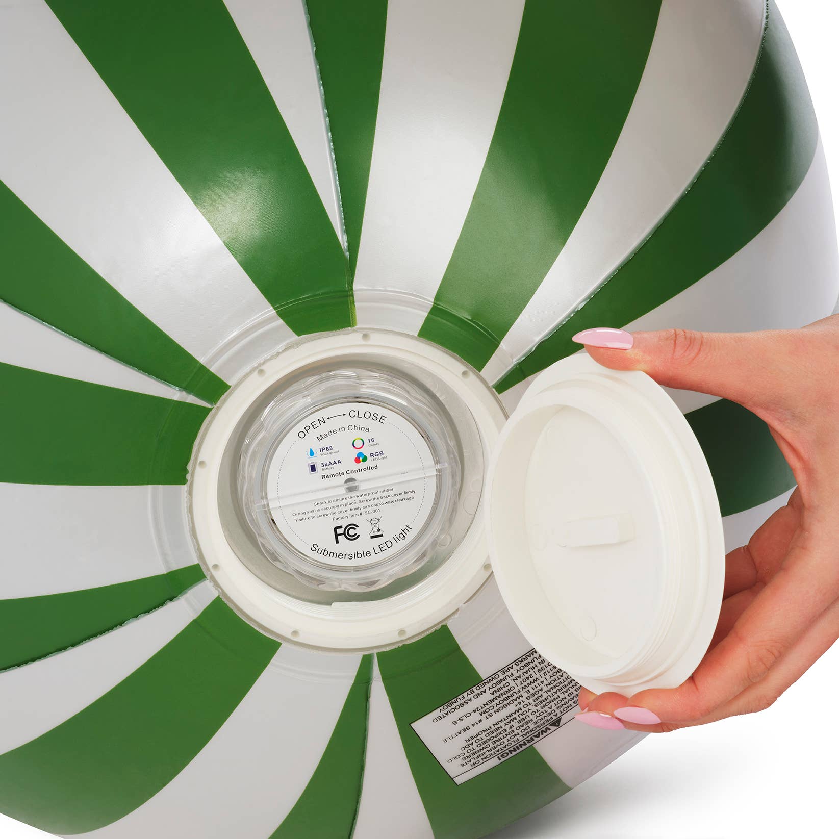 Deck the halls with FUNBOY's oversized light-up Christmas Holiday Balls perfect for indoor or outdoor use (they even float!). Sold as a 3-pack of 30" inflatable Christmas Ornaments with metallic sheen. Features include bright battery operated and integrated LEDs with nine different colors, multiple light modes, a timer and remote control for ease of use (batteries included). Weighted base ensure the ornaments always stand upright and won't blow away in the wind. Versatile design be hung. The waterproof design even floats in your pool and withstands snow! Inflatable and easy to store. Patent Pending.