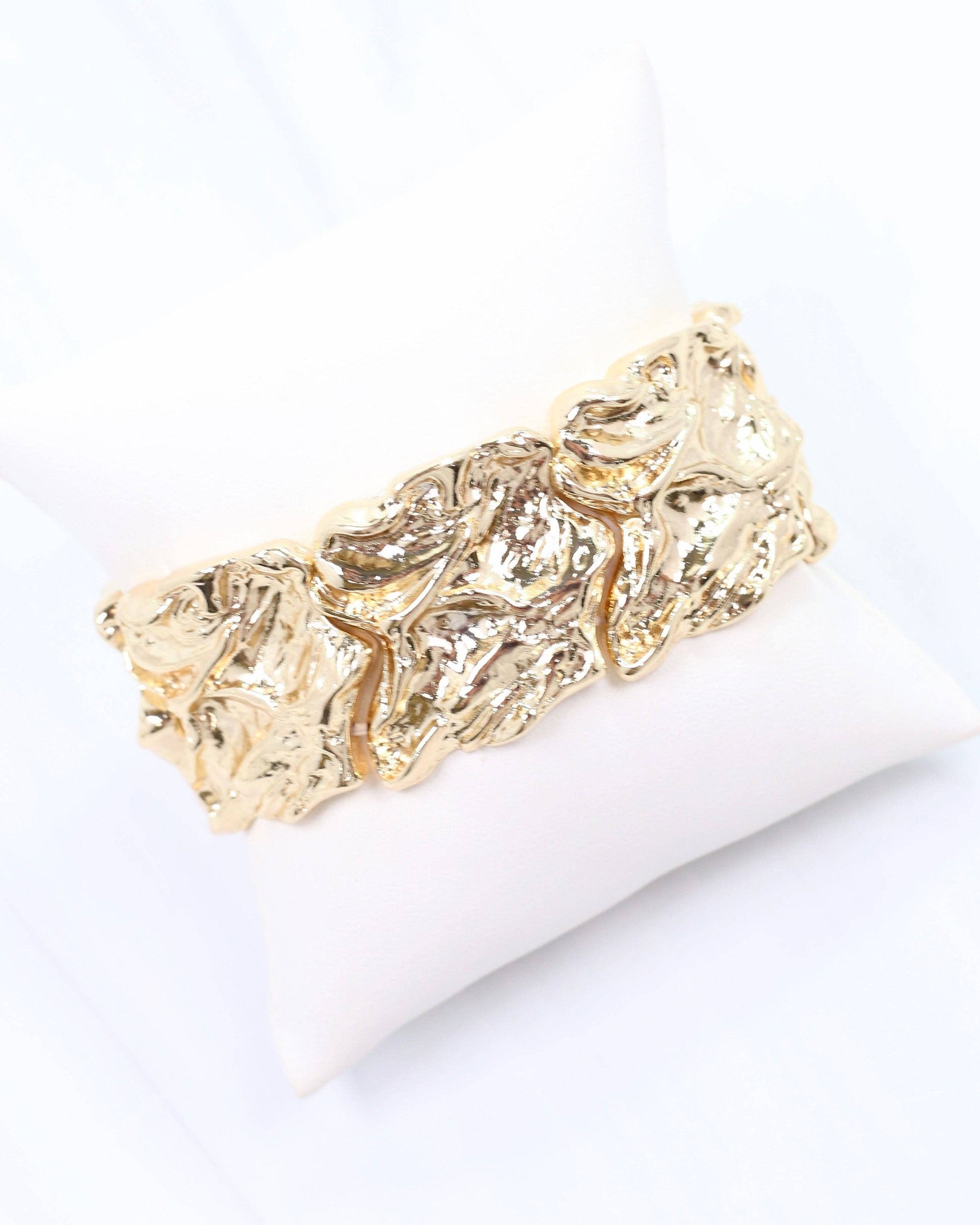 Add a touch of bold charm with the Crandell Stretch Bracelet in Gold. This wide, textured stretch bracelet effortlessly blends classy vibes with an eclectic twist, making it the perfect statement piece to brighten any outfit. Slip it on and let your wrist do the talking!
