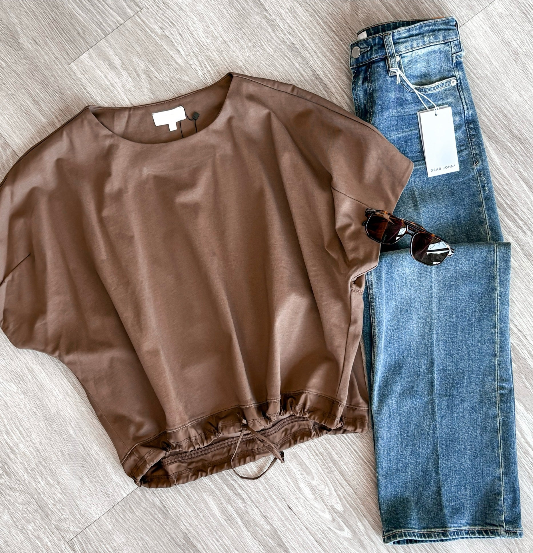 The Espresso Top will elevate your casual look with its solid coffee color and draw tie waist. Look stylish and effortlessly put-together while feeling comfortable and cinched in all the right places. Add this versatile piece to your wardrobe for a touch of refinement in any outfit!