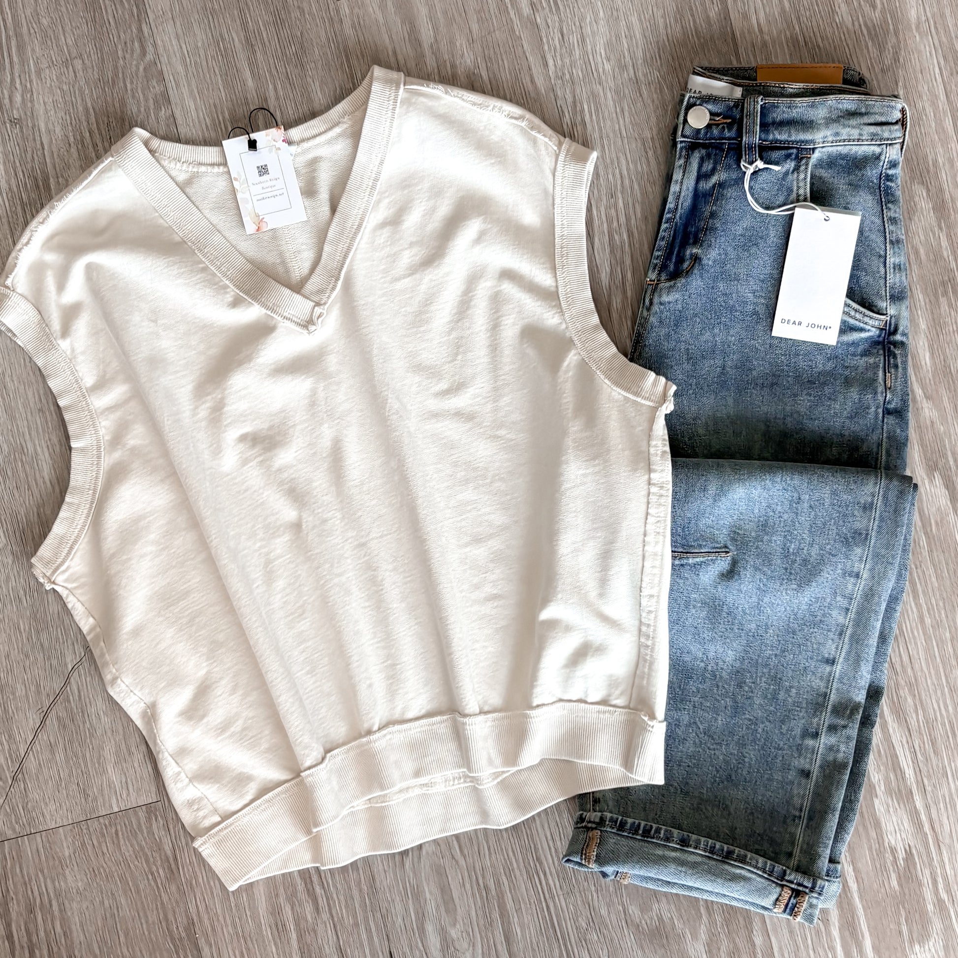 Elevate your style with the Laura Top, available in cream or black. This oversized vest top is perfect for layering over a fitted long sleeve, creating a chic and trendy ensemble. Experience the fashion and comfort of the Laura Top today!