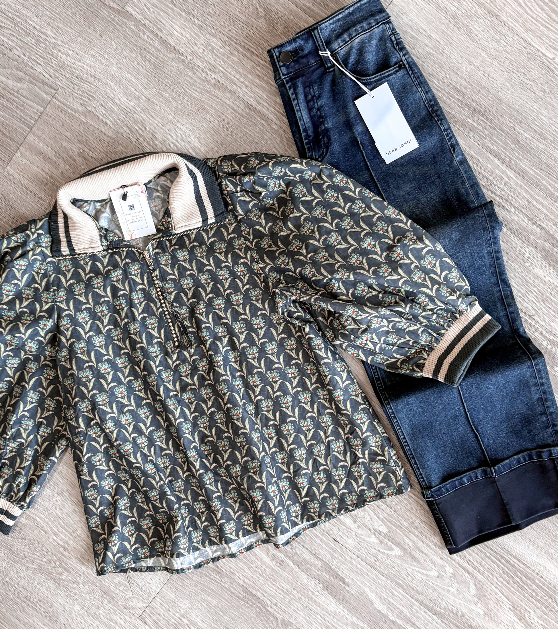 Unleash your inner fashion diva with our Layne Top! Featuring a stunning midnight navy base adorned with a delicate floral print, this top is the perfect balance of sophistication and style. Complete with a chic collar and luxurious gold zipper detail, it's a must-have for any fashion-forward wardrobe. Elevate your look and make a statement with the Layne Top.