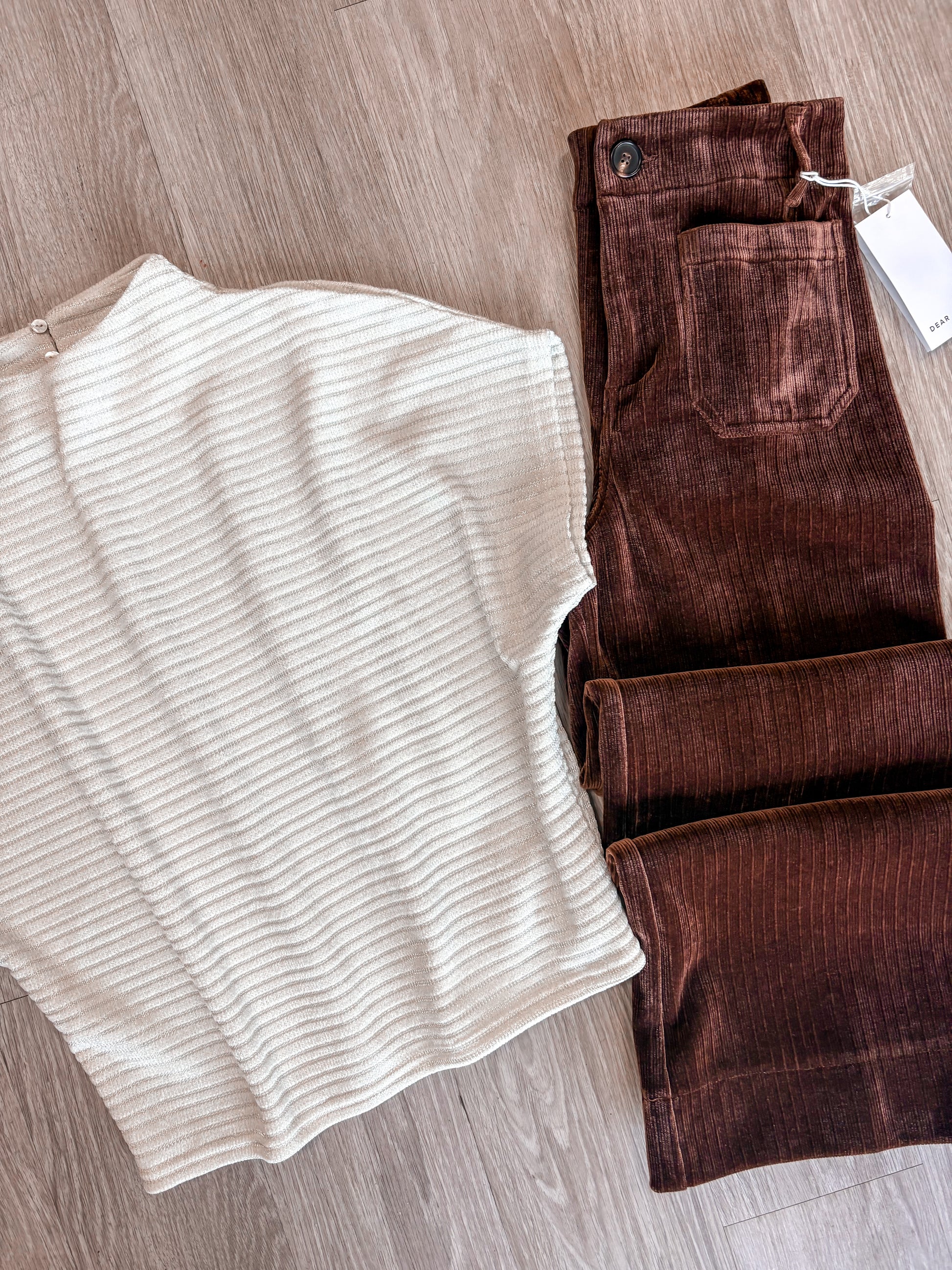 Introducing the Linda Top - a stylish and elegant mock neck top with a touch of subtle sparkle. Available in both black and ivory, this top adds a touch of sophistication to any outfit. Elevate your wardrobe with this versatile and eye-catching piece.