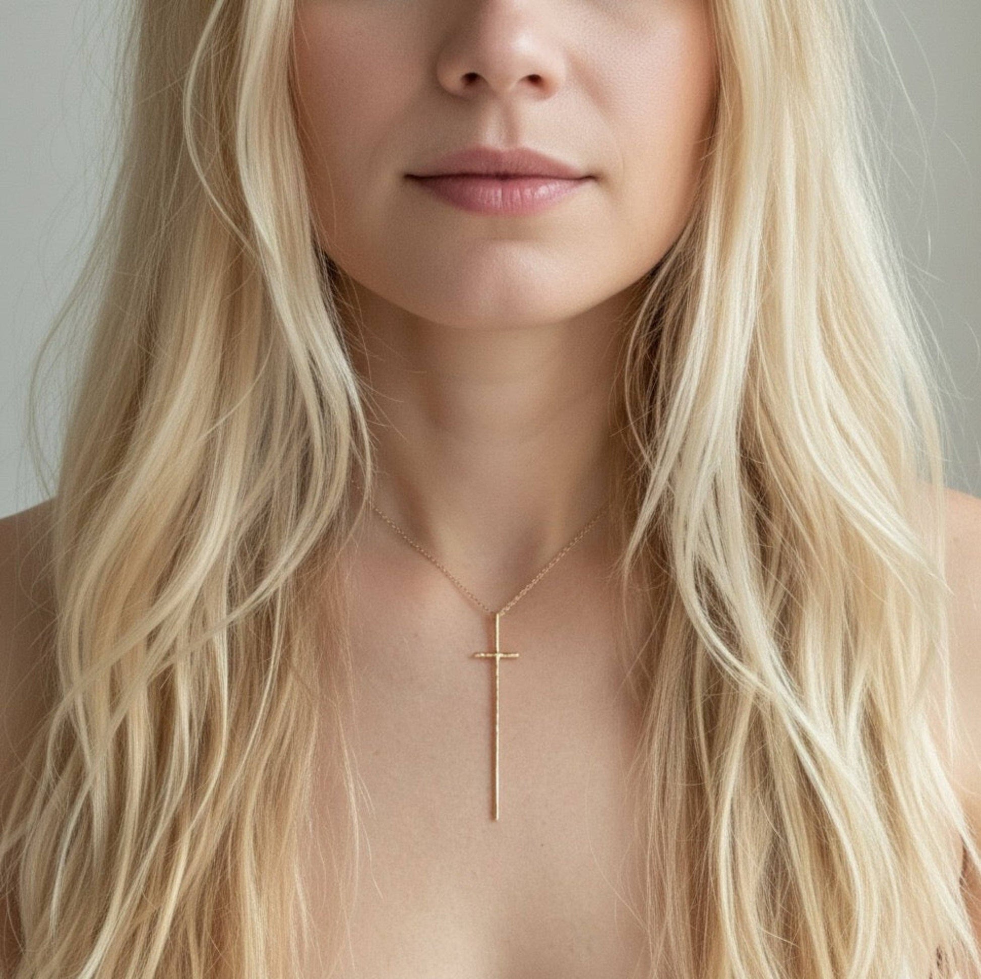 Simple yet meaningful, the Minimal Vertical Cross Necklace embodies timeless faith and modern elegance. Featuring a sleek vertical cross pendant on a delicate chain, this necklace offers a refined look that’s perfect for everyday wear or special occasions. ✔️ Vertical Cross Design – A modern take on a classic symbol of faith ✔️ Minimalist Elegance – Perfect for layering or wearing solo ✔️ Versatile Style – Complements both casual and dressy outfits Dimensions: Approximately 16" with 2" extender Materials: 18K real gold plated brass for a beautiful, rich tone Features: Hypoallergenic, lead & nickel free, made for long-lasting shine