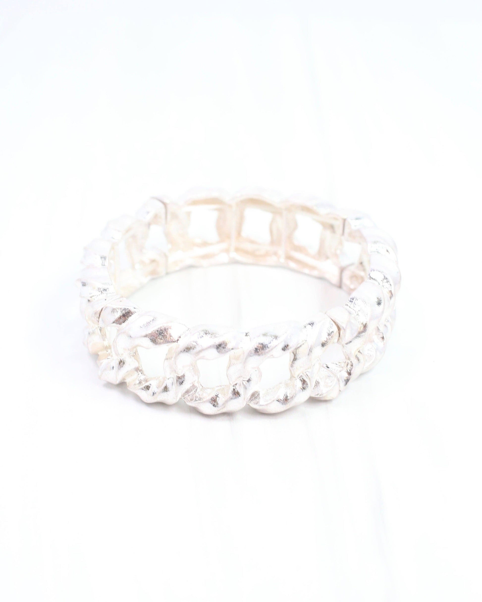 This beautiful bracelet is made of textured links for a timeless, vintage fashion. It also stretches making it great for stacking with other bracelets.