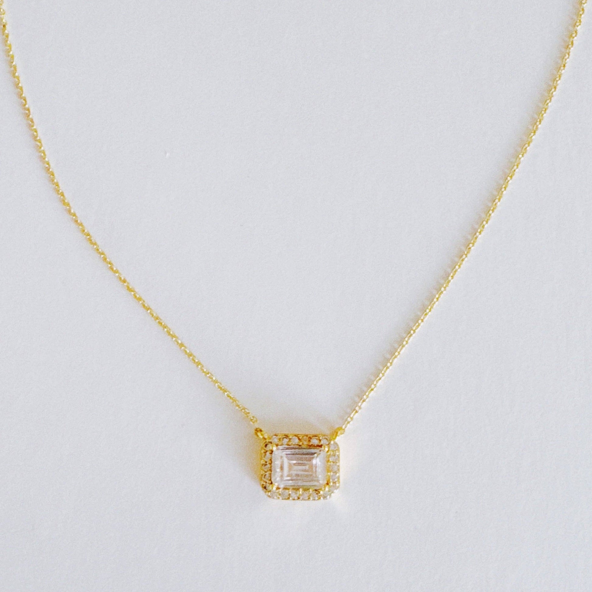 Exude timeless elegance with the Radiant Emerald Cut Pendant Necklace. Featuring a stunning cushion-cut stone set in a refined design, this necklace brings brilliant sparkle and a sophisticated touch to any outfit. ✔️ Cushion-Cut Brilliance – Sparkling stone for a classic, luxurious look ✔️ Minimalist Design – Perfect for layering or wearing solo ✔️ Day-to-Night Style – Ideal for everyday elegance or special occasions Dimensions: Approximately 15.5" with 2" extender Materials: Gold plated brass Lead and nickel free