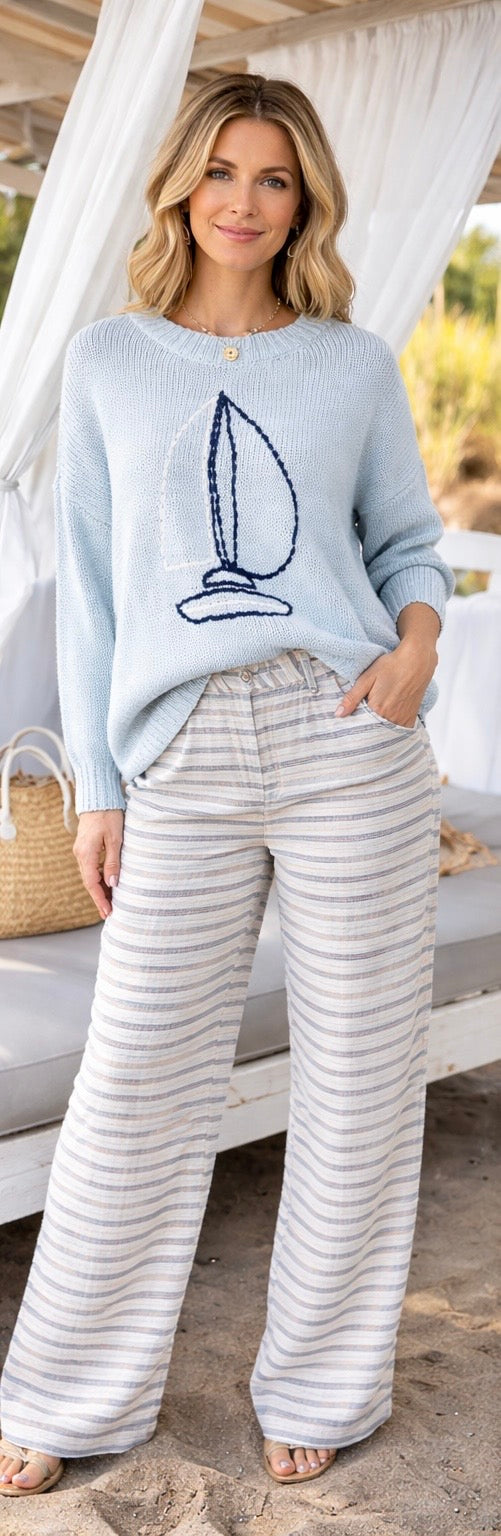 Embrace the spirit of adventure with the Sail Away with Me Top! Crafted from a lightweight, soft fabric, this sweater features charming sailboat and stitching details that evoke coastal breezes and sunny days. Wear it and feel the joy of setting sail towards new horizons!