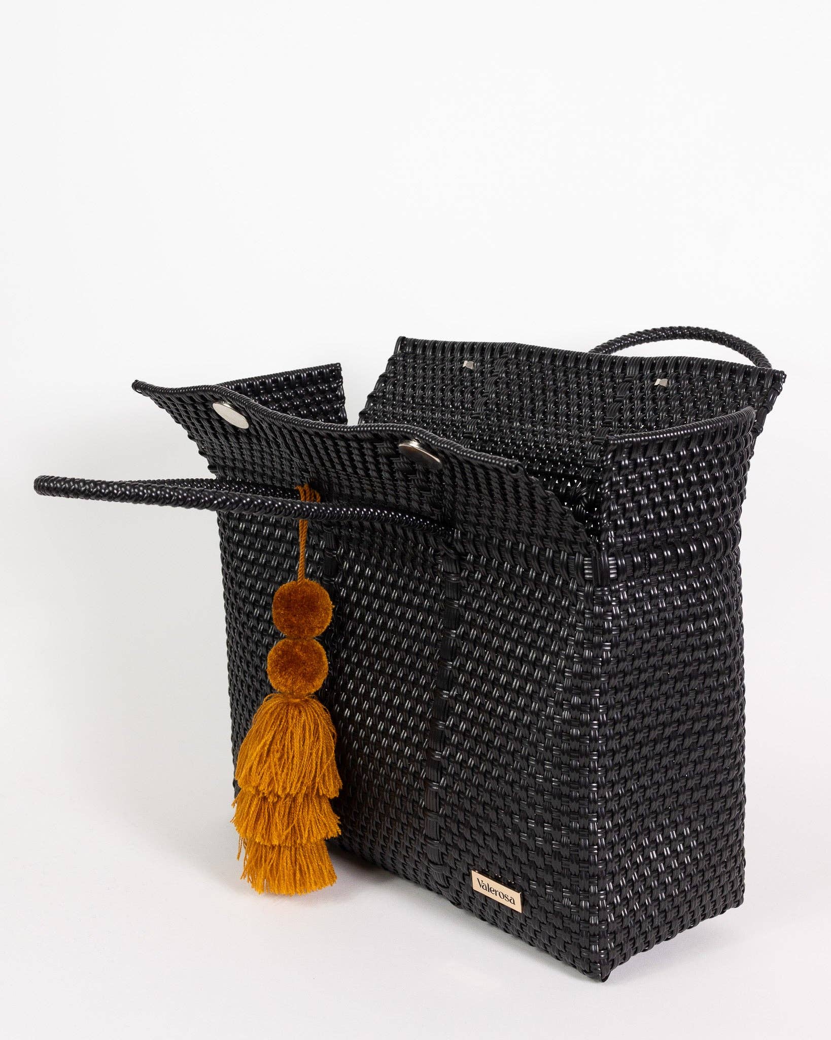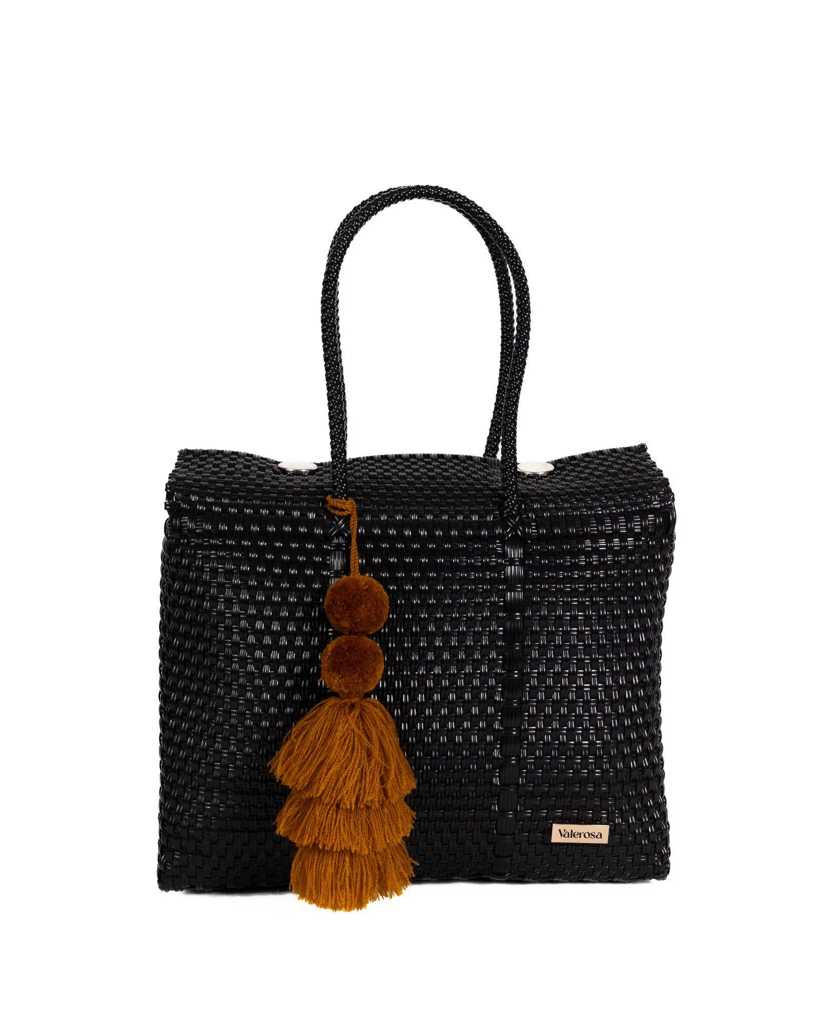 Solid Black is for the ones who embody timeless sophistication. Featuring a sleek all-black woven design that’s effortlessly chic, this bag is versatile enough for any occasion. Finished with fun gold pom-pom, it’s a classic piece that adds understated elegance to every look.
