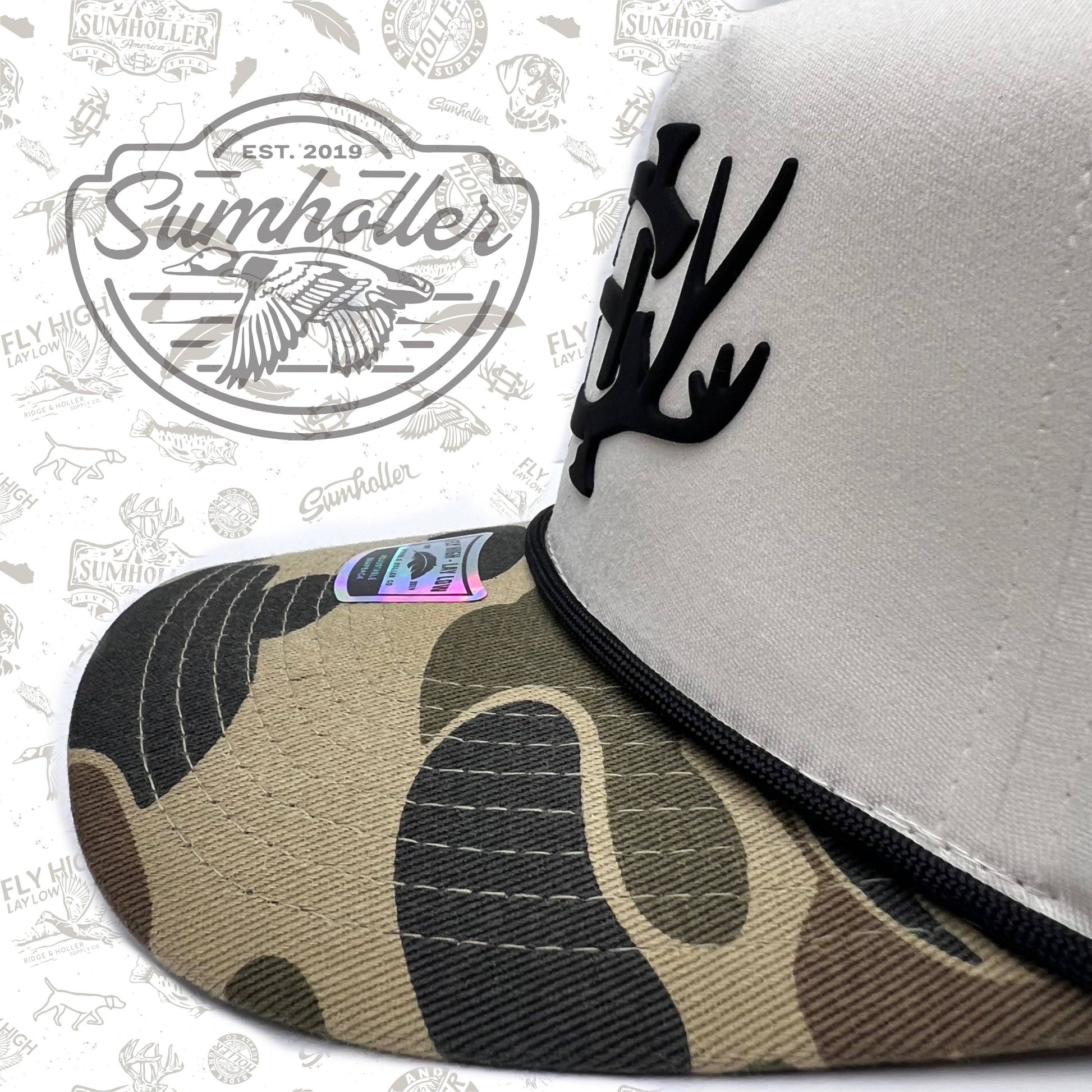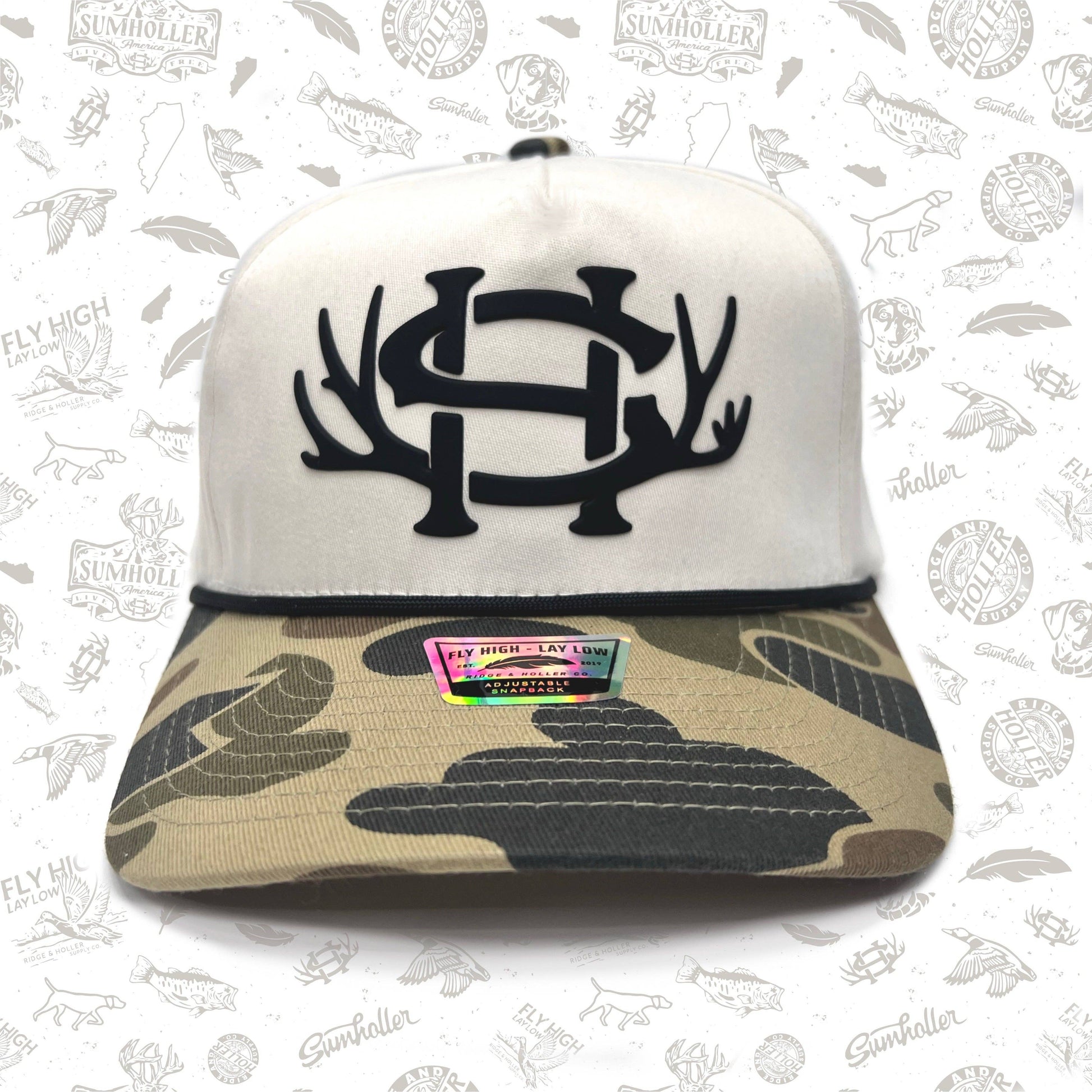 Introducing the newest member of the Sumholler family, SumRack Camo, limited edition. This hat features the iconic Sumholler logo on a khaki and camo high frame five panel, hi crown with a rope. Perfect for any outdoor lover, this cap is a must have and is a limited edition.