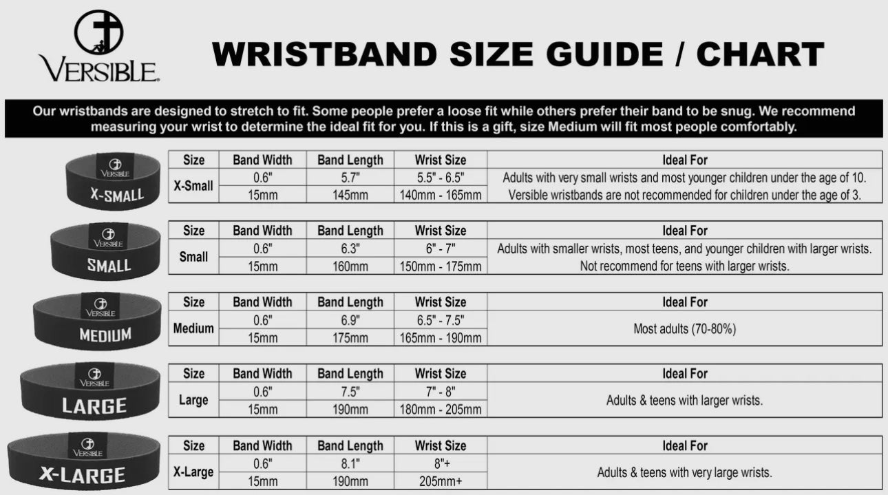 Versible® is excited to introduce our new line of Tap To Pray™ wristbands. No app required, just tap the patch with your smartphone to receive a new bible verse and prayer every day. We've also added the ability for you to receive a new verse and prayer anytime you want, simply hit the "New Verse" link on the bottom of the page! Tap To Pray works with most smartphones. Our wristbands are soft, stretchy, reversible and waterproof! With two reversible patterns on each wristband and 5 sizes to choose from, it's easy to find a Tap To Pray wristband that's right for you!